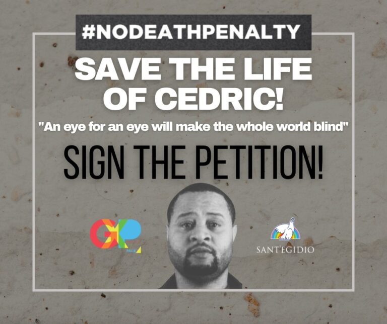 Noi Giovani per la Pace vogliamo ribadire che il mondo senza la pena di morte è un mondo più giusto, perché -ricordiamolo tutti/e le parole di Gandhi- “occhio per occhio renderà il mondo cieco”. Ne siamo convinti, noi “generazione del futuro” che crede che niente è deciso e tutto può cambiare, comprese le persone. Ci impegniamo per costruire un mondo che non diventi “cieco” e che non risponda alla violenza con altra violenza. Chiediamo che la vita di Cedric venga risparmiata dal braccio della morte.